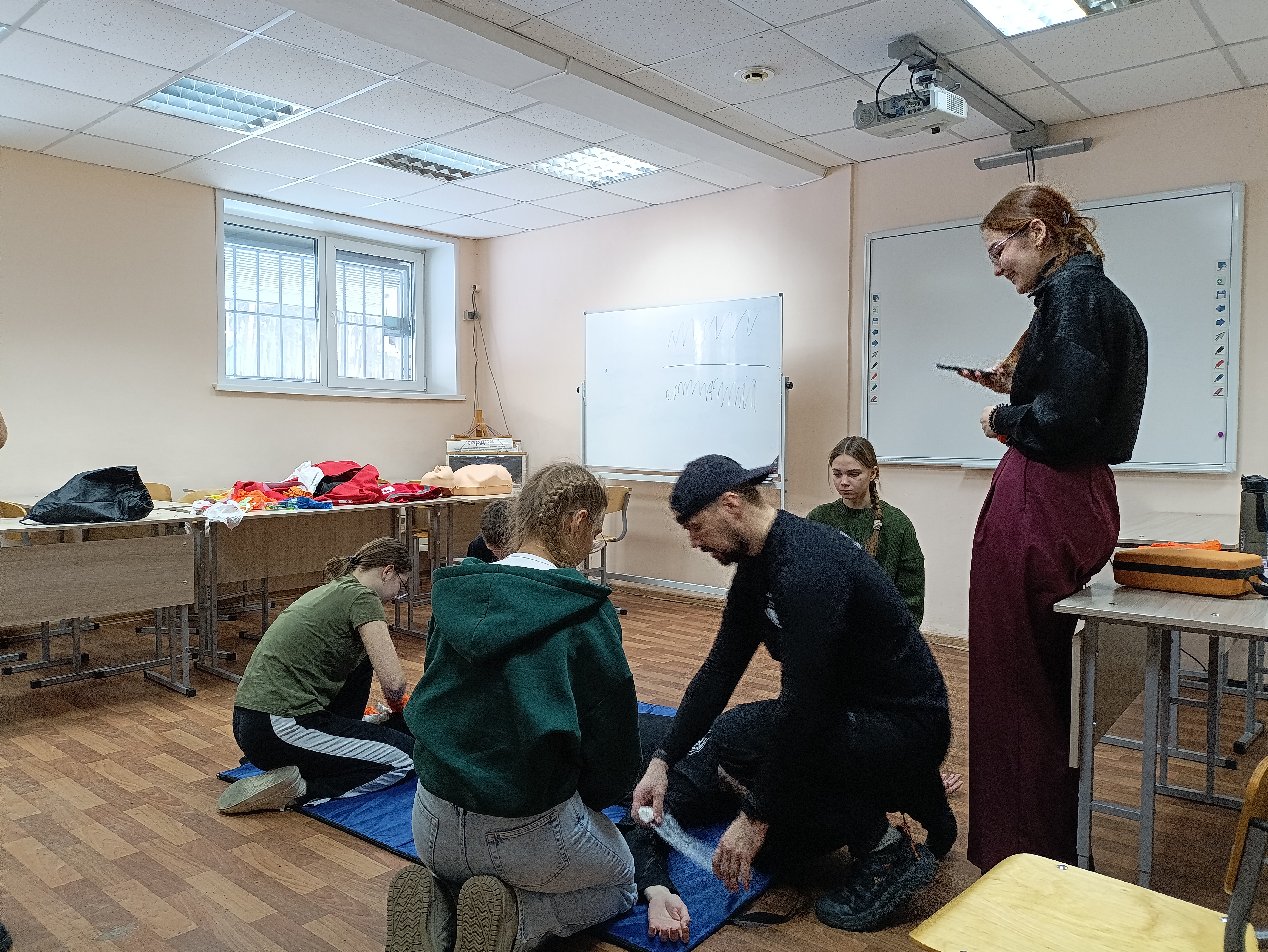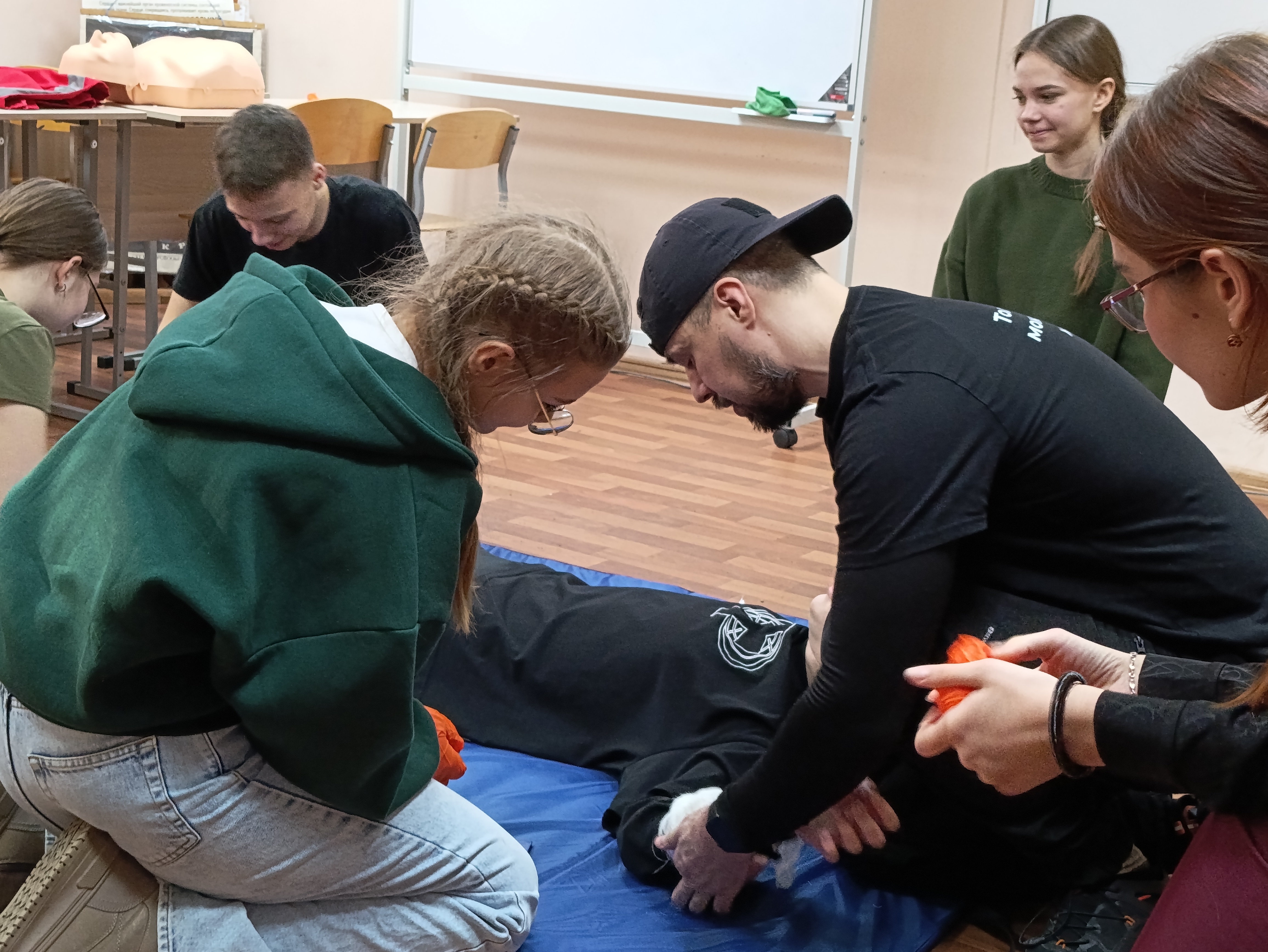 На занятии школьники из Красноярска и Канска отрабатывали алгоритм оказания первой помощи, учились останавливать кровотечения, проводить сердечно-легочную реанимацию, восстанавливать проходимость дыхательных путей.