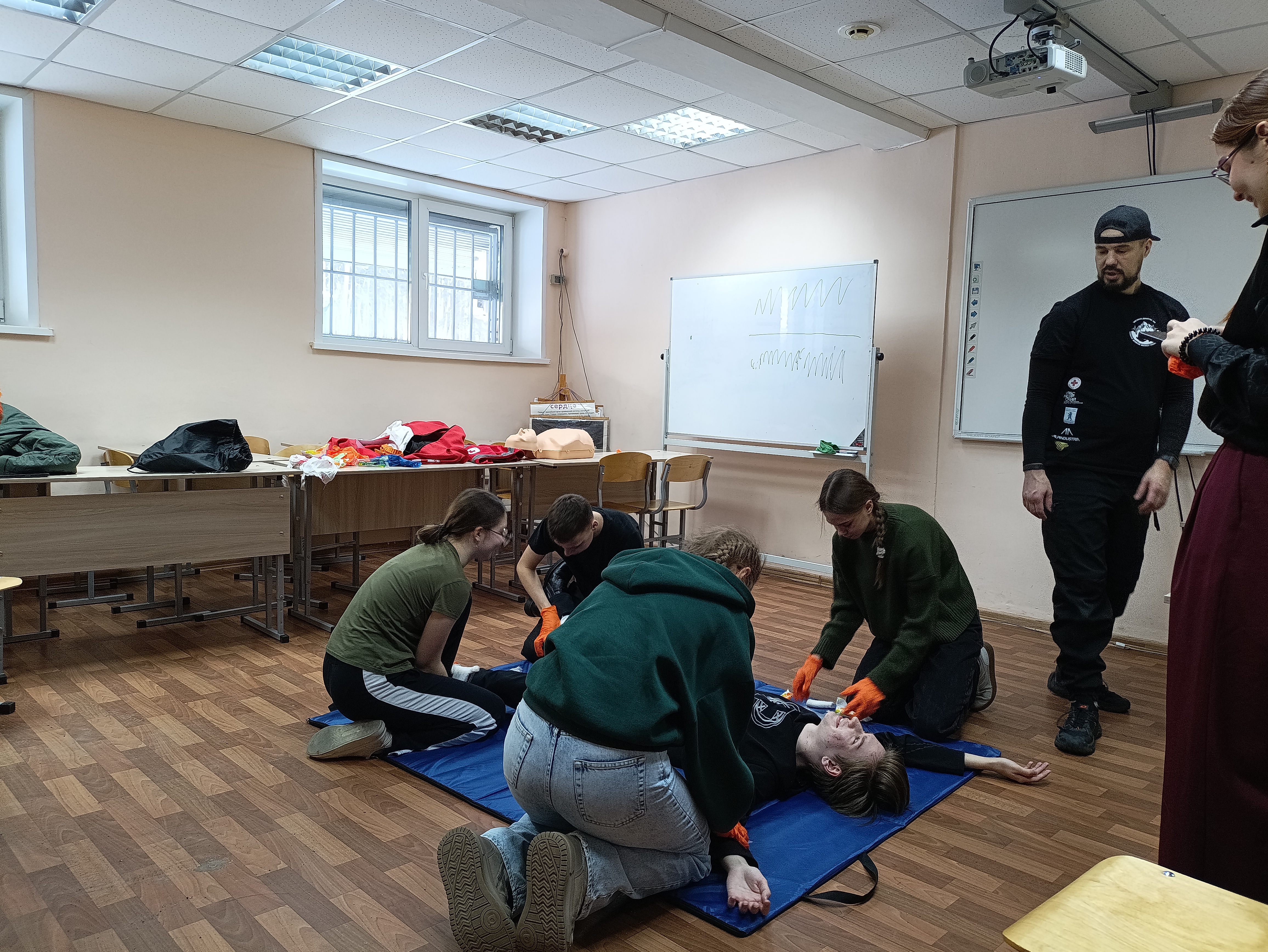 При изучении модуля программы «Основы медицинских знаний. Здоровый образ жизни» инструктор регионального отделения общероссийской общественной организации «Российский Красный Крест» в Красноярском крае Александр Викторович Кокотеев при участии тренеров сборной Демидко Наталии Николаевны и Глущенко Тимофея Александровича провел практическое тренировочное занятие «Оказание первой помощи».